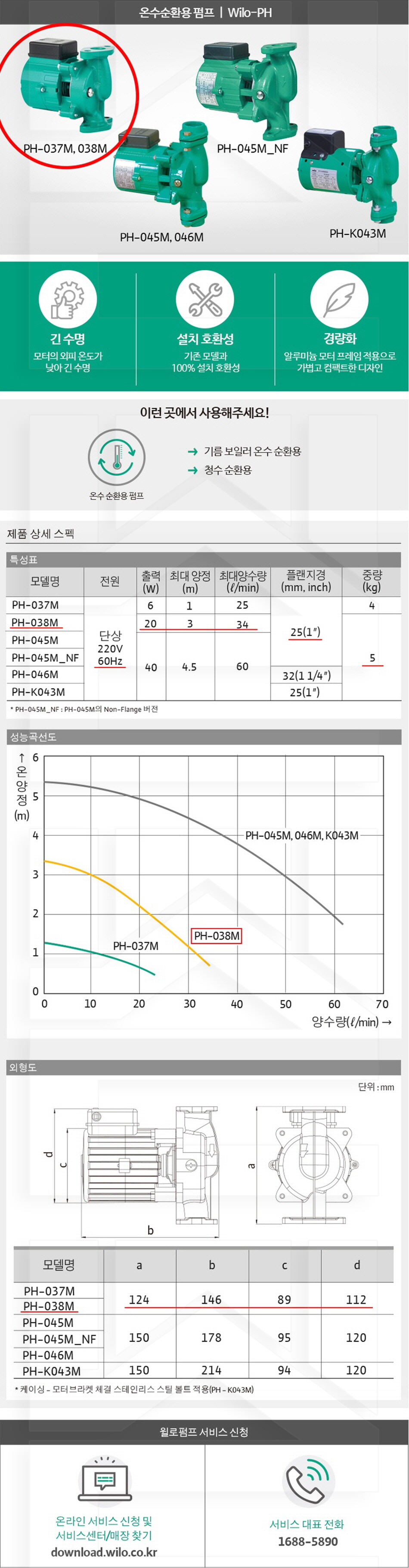 100-14-11-00010038 온수순환용, PH-037M PH-038M 판매가 48,000 ~ 원 배송방법 일반배송 브랜드 제조사 윌로펌프 주식회사 상품옵션 품명 옵션코드 규격 중량 판매단위 회원가 수량 PH-038M 100-14-11-00010038 25A 5.0kg (5,000g) 0 48,000원 - + PH-045M 100-14-11-00010045 25A 5.0kg (5,000g) 0 47,000원 - + PH-046M 100-14-11-00010046 32A 5.0kg (5,000g) 0 47,000원 - + PH-K043M 100-14-11-00020043 25A 5.0kg (5,000g) 0 58,000원 - + PH-080M 100-14-11-00020080 40A 6.5kg (6,500g) 0 107,000원 - + PH-081M 100-14-11-00020081 32A 6.5kg (6,500g) 0 107,000원 - + PH-100M 100-14-11-00020100 40A 7.0kg (7,000g) 0 127,000원 - + PH-200M 100-14-11-00020200 40A 11.0kg (11,000g) 0 154,000원 - + PH-250M 100-14-11-00020250 50A 12.0kg (12,000g) 0 181,000원 - + PH-350M 100-14-11-00020350 50A 12.0kg (12,000g) 0 192,000원 - + PH-600M 100-14-11-00020600 65A 20.0kg (20,000g) 0 295,000원 - + PH-601M 100-14-11-00020601 80A 20.0kg (20,000g) 0 295,000원 - + PH-950M 100-14-11-00020950 50A 21.0kg (21,000g) 0 372,000원 - + 총 상품 금액(VAT포함) 원 회원 / 비회원 구매하기 상품담기 제품상세정보 상품문의 (0) 배송 안내 반품/교환 안내 온수순환용 펌프 상품 문의하기 배송안내 배송 안내 일반제품 당일 1시 이전 주문시 재고 여부에 따라 당일발송 재고 부족시 2~3일 소요 파손위험제품 (화물택배/차량배송) 파손위험이 큰 제품은 빠렛트로 포장되어 차량으로 이동됩니다. 고객님이 지정한 장소와 가장 가까운 차량접근이 가능한 도로까지만 배송 주문물량 및 제품의 특성에 따라 화물, 화물택배. 합짐차량. 단독차량으로 고객님의 요청에 따라 운송 차량 지정 제품 하차시 파손이 있을 수 있으므로, 꼭 하차전 제품을 확인 고객센터 고객 센터 010-6539-7900 상담시간 오전 09시 ~ 오후 6시 점심 : 12:00 ~ 13:00 / 휴일 : 토, 일요일, 공휴일 반품/교환 안내 제품의 하자 및 오배송은 문의 주시면 즉시 처리해드리겠습니다. 반품/교환 판매자 지정택배사 : CJ대한통운 반품배송비(편도) : 3,000원 교환배송비(왕복) : 6,000원 보내실 곳 : 전라북도 전주시 완산구 콩쥐팥쥐로 1570 * 반품/교환 사유에 따른 요청 가능 기간 구매자 단순 변심 : 상품수령후 7일이내(구매자 반품 배송비 부담) 반품/교환 불가능 사유 교환/반품 요청 기간이 지난 경우 소비자의 책임 있는 사유로 상품 등이 분실/파손/훼손된 경우 소비자의 사용/소비에 의해 상품 등의 가치가 현저히 감소한 경우 제품을 설치 또는 장착하였을 경우 주문제작 상품중 상품제작에 들어간 경우 제품을 하차 또는 시공 후의 공정과정에서 일어난 파손의 경우 교환 반품시 고객 부담 배송비를 지불하지 아니한 경우 * 펌프제품은 미사용, 포장박스 미훼손 시에만 교환/반품이 가능합니다. 고객센터 고객 센터 010-6539-7900 상담시간 오전 09시 ~ 오후 6시 점심 : 12:00 ~ 13:00 / 휴일 : 토, 일요일, 공휴일