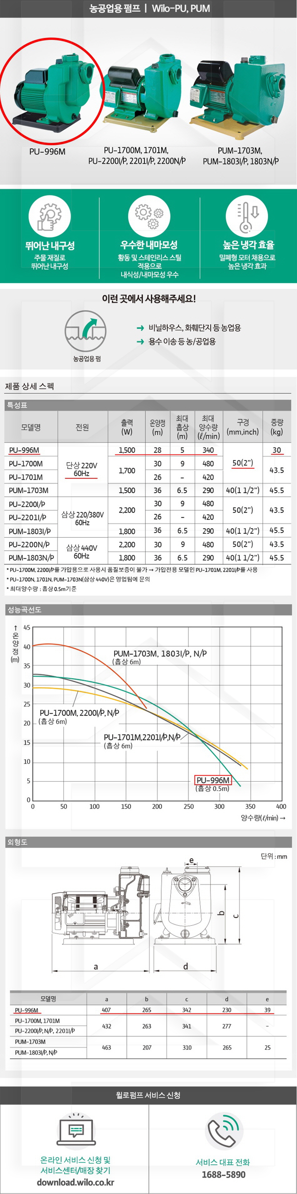 100-22-11-00000996 농공업용, 고압용펌프, 구PU-994M PU-996M 판매가 432,000 ~ 원 배송방법 일반배송 브랜드 제조사 윌로펌프 주식회사 상품옵션 품명 옵션코드 규격 중량 판매단위 회원가 수량 PU-996M 100-22-11-00000996 50A 30.0kg (30,000g) 0 432,000원 - + PU-1700M 100-22-11-00001700 50A 43.5kg (43,500g) 0 571,000원 - + 총 상품 금액(VAT포함) 원 회원 / 비회원 구매하기 상품담기 제품상세정보 상품문의 (0) 배송 안내 반품/교환 안내 농공업용 펌프 상품 문의하기 배송안내 배송 안내 일반제품 당일 1시 이전 주문시 재고 여부에 따라 당일발송 재고 부족시 2~3일 소요 파손위험제품 (화물택배/차량배송) 파손위험이 큰 제품은 빠렛트로 포장되어 차량으로 이동됩니다. 고객님이 지정한 장소와 가장 가까운 차량접근이 가능한 도로까지만 배송 주문물량 및 제품의 특성에 따라 화물, 화물택배. 합짐차량. 단독차량으로 고객님의 요청에 따라 운송 차량 지정 제품 하차시 파손이 있을 수 있으므로, 꼭 하차전 제품을 확인 고객센터 고객 센터 010-6539-7900 상담시간 오전 09시 ~ 오후 6시 점심 : 12:00 ~ 13:00 / 휴일 : 토, 일요일, 공휴일 반품/교환 안내 제품의 하자 및 오배송은 문의 주시면 즉시 처리해드리겠습니다. 반품/교환 판매자 지정택배사 : CJ대한통운 반품배송비(편도) : 3,000원 교환배송비(왕복) : 6,000원 보내실 곳 : 전라북도 전주시 완산구 콩쥐팥쥐로 1570 * 반품/교환 사유에 따른 요청 가능 기간 구매자 단순 변심 : 상품수령후 7일이내(구매자 반품 배송비 부담) 반품/교환 불가능 사유 교환/반품 요청 기간이 지난 경우 소비자의 책임 있는 사유로 상품 등이 분실/파손/훼손된 경우 소비자의 사용/소비에 의해 상품 등의 가치가 현저히 감소한 경우 제품을 설치 또는 장착하였을 경우 주문제작 상품중 상품제작에 들어간 경우 제품을 하차 또는 시공 후의 공정과정에서 일어난 파손의 경우 교환 반품시 고객 부담 배송비를 지불하지 아니한 경우 * 펌프제품은 미사용, 포장박스 미훼손 시에만 교환/반품이 가능합니다. 고객센터 고객 센터 010-6539-7900 상담시간 오전 09시 ~ 오후 6시 점심 : 12:00 ~ 13:00 / 휴일 : 토, 일요일, 공휴일
