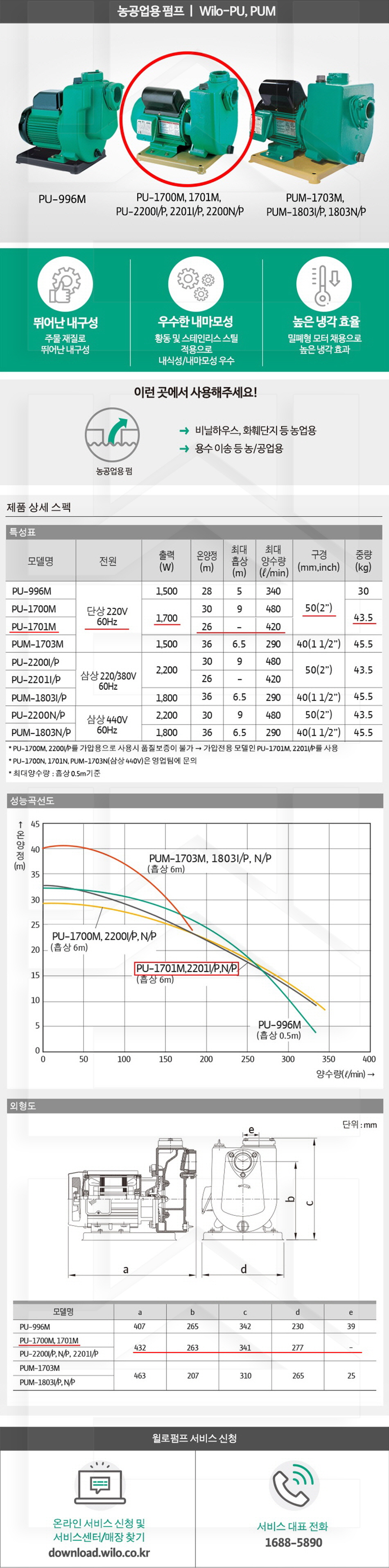 100-23-11-00001701 농공업용, 가압용펌프 PU-1701M 판매가 517,000 원 배송방법 일반배송 브랜드 제조사 윌로펌프 주식회사 상품옵션 품명 옵션코드 규격 중량 판매단위 회원가 수량 PU-1701M 100-23-11-00001701 50A 43.5kg (43,500g) 0 517,000원 - + 총 상품 금액(VAT포함) 원 회원 / 비회원 구매하기 상품담기 제품상세정보 상품문의 (0) 배송 안내 반품/교환 안내 농공업용 펌프 상품 문의하기 배송안내 배송 안내 일반제품 당일 1시 이전 주문시 재고 여부에 따라 당일발송 재고 부족시 2~3일 소요 파손위험제품 (화물택배/차량배송) 파손위험이 큰 제품은 빠렛트로 포장되어 차량으로 이동됩니다. 고객님이 지정한 장소와 가장 가까운 차량접근이 가능한 도로까지만 배송 주문물량 및 제품의 특성에 따라 화물, 화물택배. 합짐차량. 단독차량으로 고객님의 요청에 따라 운송 차량 지정 제품 하차시 파손이 있을 수 있으므로, 꼭 하차전 제품을 확인 고객센터 고객 센터 010-6539-7900 상담시간 오전 09시 ~ 오후 6시 점심 : 12:00 ~ 13:00 / 휴일 : 토, 일요일, 공휴일 반품/교환 안내 제품의 하자 및 오배송은 문의 주시면 즉시 처리해드리겠습니다. 반품/교환 판매자 지정택배사 : CJ대한통운 반품배송비(편도) : 3,000원 교환배송비(왕복) : 6,000원 보내실 곳 : 전라북도 전주시 완산구 콩쥐팥쥐로 1570 * 반품/교환 사유에 따른 요청 가능 기간 구매자 단순 변심 : 상품수령후 7일이내(구매자 반품 배송비 부담) 반품/교환 불가능 사유 교환/반품 요청 기간이 지난 경우 소비자의 책임 있는 사유로 상품 등이 분실/파손/훼손된 경우 소비자의 사용/소비에 의해 상품 등의 가치가 현저히 감소한 경우 제품을 설치 또는 장착하였을 경우 주문제작 상품중 상품제작에 들어간 경우 제품을 하차 또는 시공 후의 공정과정에서 일어난 파손의 경우 교환 반품시 고객 부담 배송비를 지불하지 아니한 경우 * 펌프제품은 미사용, 포장박스 미훼손 시에만 교환/반품이 가능합니다. 고객센터 고객 센터 010-6539-7900 상담시간 오전 09시 ~ 오후 6시 점심 : 12:00 ~ 13:00 / 휴일 : 토, 일요일, 공휴일