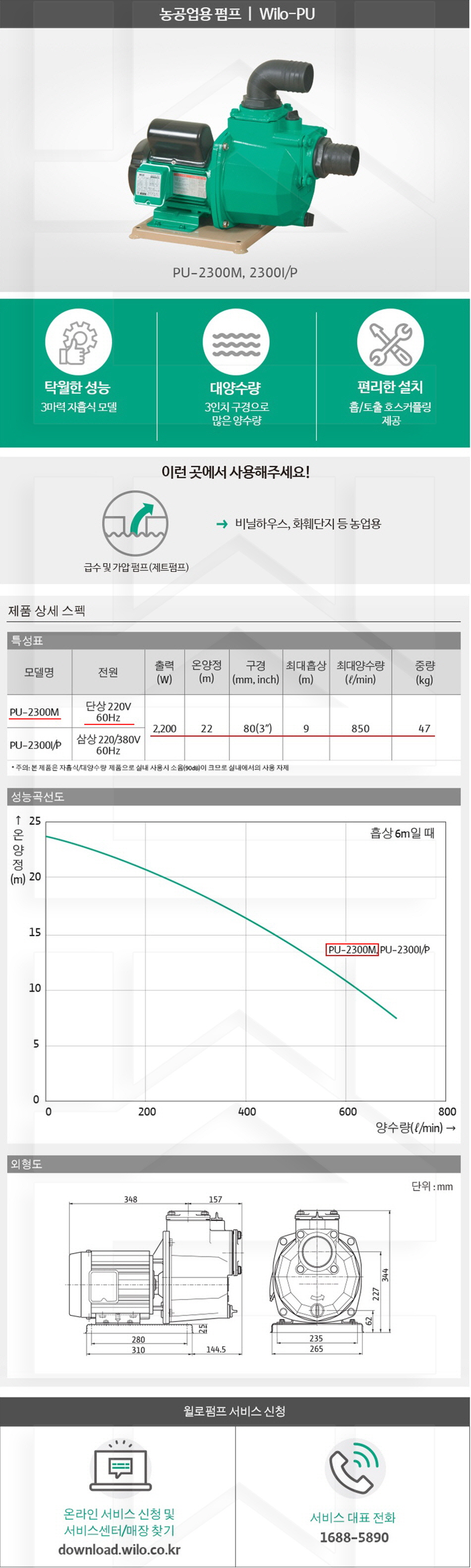 100-24-11-00002300 농공업용, 3마력3인치펌프 PU-2300M 판매가 685,000 원 배송방법 일반배송 브랜드 제조사 윌로펌프 주식회사 상품옵션 품명 옵션코드 규격 중량 판매단위 회원가 수량 PU-2300M 100-24-11-00002300 80A 47.0kg (47,000g) 0 685,000원 - + 총 상품 금액(VAT포함) 원 회원 / 비회원 구매하기 상품담기 제품상세정보 상품문의 (0) 배송 안내 반품/교환 안내 농공업용 펌프 상품 문의하기 배송안내 배송 안내 일반제품 당일 1시 이전 주문시 재고 여부에 따라 당일발송 재고 부족시 2~3일 소요 파손위험제품 (화물택배/차량배송) 파손위험이 큰 제품은 빠렛트로 포장되어 차량으로 이동됩니다. 고객님이 지정한 장소와 가장 가까운 차량접근이 가능한 도로까지만 배송 주문물량 및 제품의 특성에 따라 화물, 화물택배. 합짐차량. 단독차량으로 고객님의 요청에 따라 운송 차량 지정 제품 하차시 파손이 있을 수 있으므로, 꼭 하차전 제품을 확인 고객센터 고객 센터 010-6539-7900 상담시간 오전 09시 ~ 오후 6시 점심 : 12:00 ~ 13:00 / 휴일 : 토, 일요일, 공휴일 반품/교환 안내 제품의 하자 및 오배송은 문의 주시면 즉시 처리해드리겠습니다. 반품/교환 판매자 지정택배사 : CJ대한통운 반품배송비(편도) : 3,000원 교환배송비(왕복) : 6,000원 보내실 곳 : 전라북도 전주시 완산구 콩쥐팥쥐로 1570 * 반품/교환 사유에 따른 요청 가능 기간 구매자 단순 변심 : 상품수령후 7일이내(구매자 반품 배송비 부담) 반품/교환 불가능 사유 교환/반품 요청 기간이 지난 경우 소비자의 책임 있는 사유로 상품 등이 분실/파손/훼손된 경우 소비자의 사용/소비에 의해 상품 등의 가치가 현저히 감소한 경우 제품을 설치 또는 장착하였을 경우 주문제작 상품중 상품제작에 들어간 경우 제품을 하차 또는 시공 후의 공정과정에서 일어난 파손의 경우 교환 반품시 고객 부담 배송비를 지불하지 아니한 경우 * 펌프제품은 미사용, 포장박스 미훼손 시에만 교환/반품이 가능합니다. 고객센터 고객 센터 010-6539-7900 상담시간 오전 09시 ~ 오후 6시 점심 : 12:00 ~ 13:00 / 휴일 : 토, 일요일, 공휴일