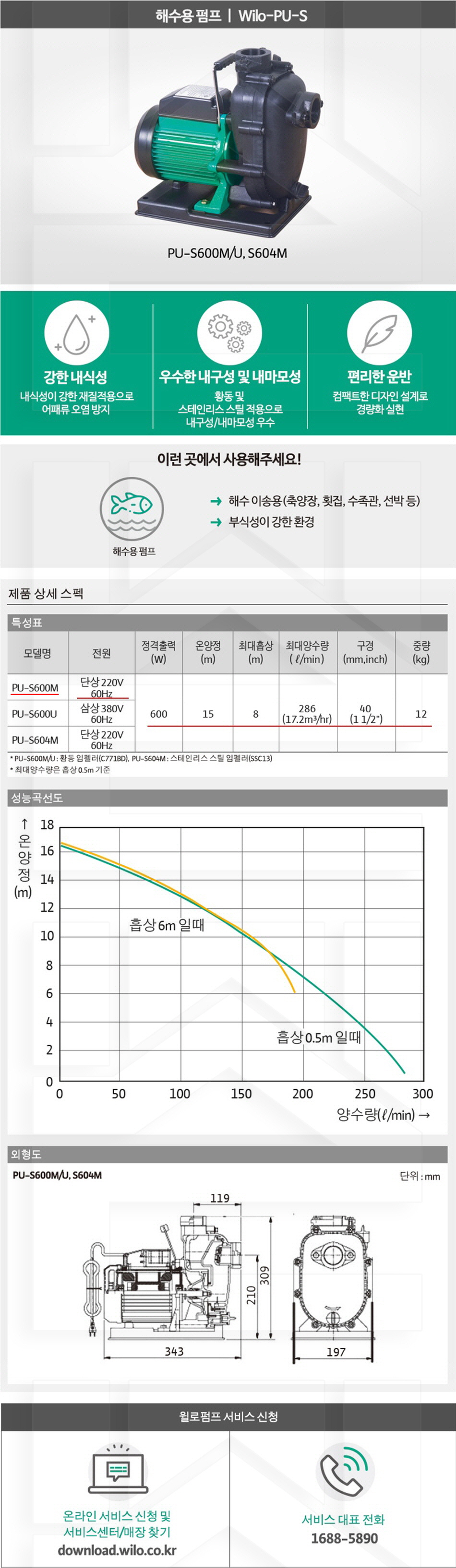 100-26-11-00000600 해수용펌프 PU-S600M 판매가 233,000 원 배송방법 일반배송 브랜드 제조사 윌로펌프 주식회사 상품옵션 품명 옵션코드 규격 중량 판매단위 회원가 수량 PU-S600M 100-26-11-00000600 40A 12.0kg (12,000g) 0 233,000원 - + 총 상품 금액(VAT포함) 원 회원 / 비회원 구매하기 상품담기 제품상세정보 상품문의 (0) 배송 안내 반품/교환 안내 해수용 펌프 상품 문의하기 배송안내 배송 안내 일반제품 당일 1시 이전 주문시 재고 여부에 따라 당일발송 재고 부족시 2~3일 소요 파손위험제품 (화물택배/차량배송) 파손위험이 큰 제품은 빠렛트로 포장되어 차량으로 이동됩니다. 고객님이 지정한 장소와 가장 가까운 차량접근이 가능한 도로까지만 배송 주문물량 및 제품의 특성에 따라 화물, 화물택배. 합짐차량. 단독차량으로 고객님의 요청에 따라 운송 차량 지정 제품 하차시 파손이 있을 수 있으므로, 꼭 하차전 제품을 확인 고객센터 고객 센터 010-6539-7900 상담시간 오전 09시 ~ 오후 6시 점심 : 12:00 ~ 13:00 / 휴일 : 토, 일요일, 공휴일 반품/교환 안내 제품의 하자 및 오배송은 문의 주시면 즉시 처리해드리겠습니다. 반품/교환 판매자 지정택배사 : CJ대한통운 반품배송비(편도) : 3,000원 교환배송비(왕복) : 6,000원 보내실 곳 : 전라북도 전주시 완산구 콩쥐팥쥐로 1570 * 반품/교환 사유에 따른 요청 가능 기간 구매자 단순 변심 : 상품수령후 7일이내(구매자 반품 배송비 부담) 반품/교환 불가능 사유 교환/반품 요청 기간이 지난 경우 소비자의 책임 있는 사유로 상품 등이 분실/파손/훼손된 경우 소비자의 사용/소비에 의해 상품 등의 가치가 현저히 감소한 경우 제품을 설치 또는 장착하였을 경우 주문제작 상품중 상품제작에 들어간 경우 제품을 하차 또는 시공 후의 공정과정에서 일어난 파손의 경우 교환 반품시 고객 부담 배송비를 지불하지 아니한 경우 * 펌프제품은 미사용, 포장박스 미훼손 시에만 교환/반품이 가능합니다. 고객센터 고객 센터 010-6539-7900 상담시간 오전 09시 ~ 오후 6시 점심 : 12:00 ~ 13:00 / 휴일 : 토, 일요일, 공휴일