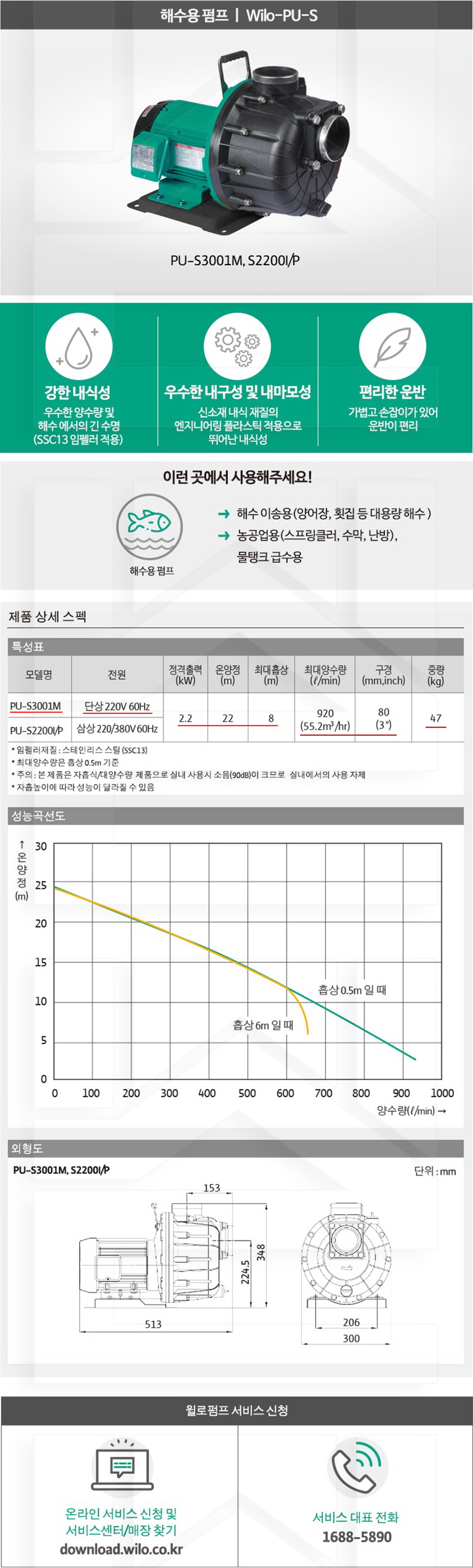 100-27-11-00003001 해수용펌프 스텐임펠러 PU-S3001M 판매가 785,000 ~ 원 배송방법 일반배송 브랜드 제조사 윌로펌프 주식회사 상품옵션 품명 옵션코드 규격 중량 판매단위 회원가 수량 PU-S604M 100-27-11-00000604 40A 12.0kg (12,000g) 0 278,000원 - + PU-S990M/H 100-27-11-00000990 50A 22.0kg (22,000g) 0 533,000원 - + PU-S1700M 100-27-11-00001700 50A 32.0kg (32,000g) 0 662,000원 - + PU-S3001M 100-27-11-00003001 80A 47.0kg (47,000g) 0 785,000원 - + 총 상품 금액(VAT포함) 원 회원 / 비회원 구매하기 상품담기 제품상세정보 상품문의 (0) 배송 안내 반품/교환 안내 해수용 펌프 상품 문의하기 배송안내 배송 안내 일반제품 당일 1시 이전 주문시 재고 여부에 따라 당일발송 재고 부족시 2~3일 소요 파손위험제품 (화물택배/차량배송) 파손위험이 큰 제품은 빠렛트로 포장되어 차량으로 이동됩니다. 고객님이 지정한 장소와 가장 가까운 차량접근이 가능한 도로까지만 배송 주문물량 및 제품의 특성에 따라 화물, 화물택배. 합짐차량. 단독차량으로 고객님의 요청에 따라 운송 차량 지정 제품 하차시 파손이 있을 수 있으므로, 꼭 하차전 제품을 확인 고객센터 고객 센터 010-6539-7900 상담시간 오전 09시 ~ 오후 6시 점심 : 12:00 ~ 13:00 / 휴일 : 토, 일요일, 공휴일 반품/교환 안내 제품의 하자 및 오배송은 문의 주시면 즉시 처리해드리겠습니다. 반품/교환 판매자 지정택배사 : CJ대한통운 반품배송비(편도) : 3,000원 교환배송비(왕복) : 6,000원 보내실 곳 : 전라북도 전주시 완산구 콩쥐팥쥐로 1570 * 반품/교환 사유에 따른 요청 가능 기간 구매자 단순 변심 : 상품수령후 7일이내(구매자 반품 배송비 부담) 반품/교환 불가능 사유 교환/반품 요청 기간이 지난 경우 소비자의 책임 있는 사유로 상품 등이 분실/파손/훼손된 경우 소비자의 사용/소비에 의해 상품 등의 가치가 현저히 감소한 경우 제품을 설치 또는 장착하였을 경우 주문제작 상품중 상품제작에 들어간 경우 제품을 하차 또는 시공 후의 공정과정에서 일어난 파손의 경우 교환 반품시 고객 부담 배송비를 지불하지 아니한 경우 * 펌프제품은 미사용, 포장박스 미훼손 시에만 교환/반품이 가능합니다. 고객센터 고객 센터 010-6539-7900 상담시간 오전 09시 ~ 오후 6시 점심 : 12:00 ~ 13:00 / 휴일 : 토, 일요일, 공휴일