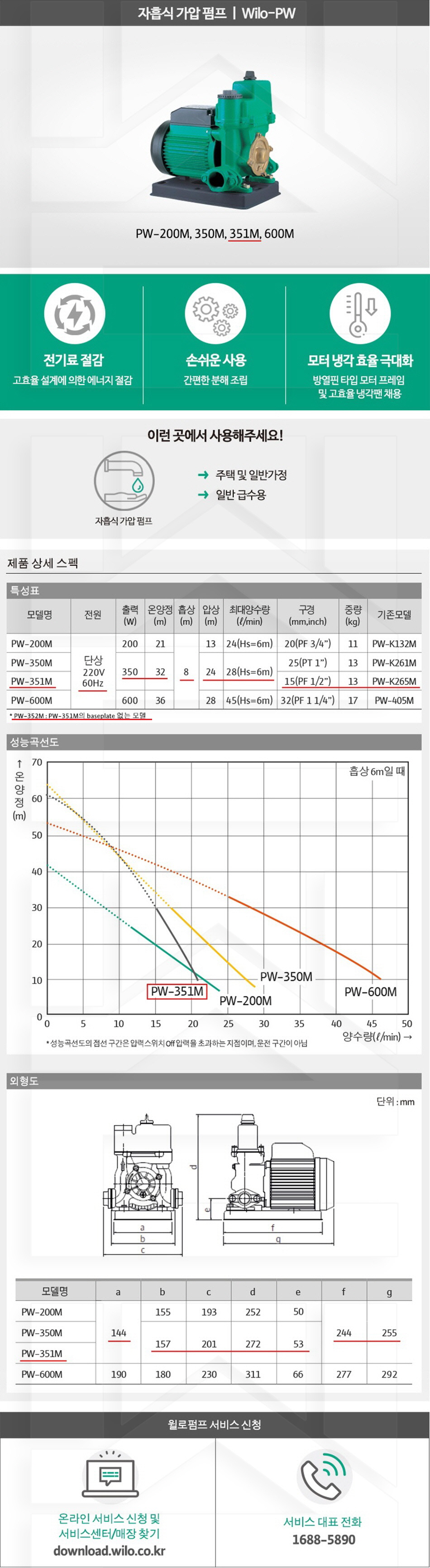100-31-11-00000352 다목적용, 자흡식가압펌프 PW-352M 판매가 189,000 ~ 원 배송방법 일반배송 브랜드 제조사 윌로펌프 주식회사 상품옵션 품명 옵션코드 규격 중량 판매단위 회원가 수량 PW-200M 100-31-11-00000200 20A 11.0kg (11,000g) 0 184,000원 - + PW-350M 100-31-11-00000350 25A 13.0kg (13,000g) 0 223,000원 - + PW-351M 100-31-11-00000351 15A 13.0kg (13,000g) 0 218,000원 - + PW-352M 100-31-11-00000352 15A 13.0kg (13,000g) 0 189,000원 - + PW-600M 100-31-11-00000600 32A 17.0kg (17,000g) 0 274,000원 - + PW-952M/H 100-31-11-00000952 40A 23.0kg (23,000g) 0 405,000원 - + PW-2200M 100-31-11-00002200 40A 34.0kg (34,000g) 0 531,000원 - + 총 상품 금액(VAT포함) 원 회원 / 비회원 구매하기 상품담기 제품상세정보 상품문의 (0) 배송 안내 반품/교환 안내 자흡식 가압 펌프 상품 문의하기 배송안내 배송 안내 일반제품 당일 1시 이전 주문시 재고 여부에 따라 당일발송 재고 부족시 2~3일 소요 파손위험제품 (화물택배/차량배송) 파손위험이 큰 제품은 빠렛트로 포장되어 차량으로 이동됩니다. 고객님이 지정한 장소와 가장 가까운 차량접근이 가능한 도로까지만 배송 주문물량 및 제품의 특성에 따라 화물, 화물택배. 합짐차량. 단독차량으로 고객님의 요청에 따라 운송 차량 지정 제품 하차시 파손이 있을 수 있으므로, 꼭 하차전 제품을 확인 고객센터 고객 센터 010-6539-7900 상담시간 오전 09시 ~ 오후 6시 점심 : 12:00 ~ 13:00 / 휴일 : 토, 일요일, 공휴일 반품/교환 안내 제품의 하자 및 오배송은 문의 주시면 즉시 처리해드리겠습니다. 반품/교환 판매자 지정택배사 : CJ대한통운 반품배송비(편도) : 3,000원 교환배송비(왕복) : 6,000원 보내실 곳 : 전라북도 전주시 완산구 콩쥐팥쥐로 1570 * 반품/교환 사유에 따른 요청 가능 기간 구매자 단순 변심 : 상품수령후 7일이내(구매자 반품 배송비 부담) 반품/교환 불가능 사유 교환/반품 요청 기간이 지난 경우 소비자의 책임 있는 사유로 상품 등이 분실/파손/훼손된 경우 소비자의 사용/소비에 의해 상품 등의 가치가 현저히 감소한 경우 제품을 설치 또는 장착하였을 경우 주문제작 상품중 상품제작에 들어간 경우 제품을 하차 또는 시공 후의 공정과정에서 일어난 파손의 경우 교환 반품시 고객 부담 배송비를 지불하지 아니한 경우 * 펌프제품은 미사용, 포장박스 미훼손 시에만 교환/반품이 가능합니다. 고객센터 고객 센터 010-6539-7900 상담시간 오전 09시 ~ 오후 6시 점심 : 12:00 ~ 13:00 / 휴일 : 토, 일요일, 공휴일