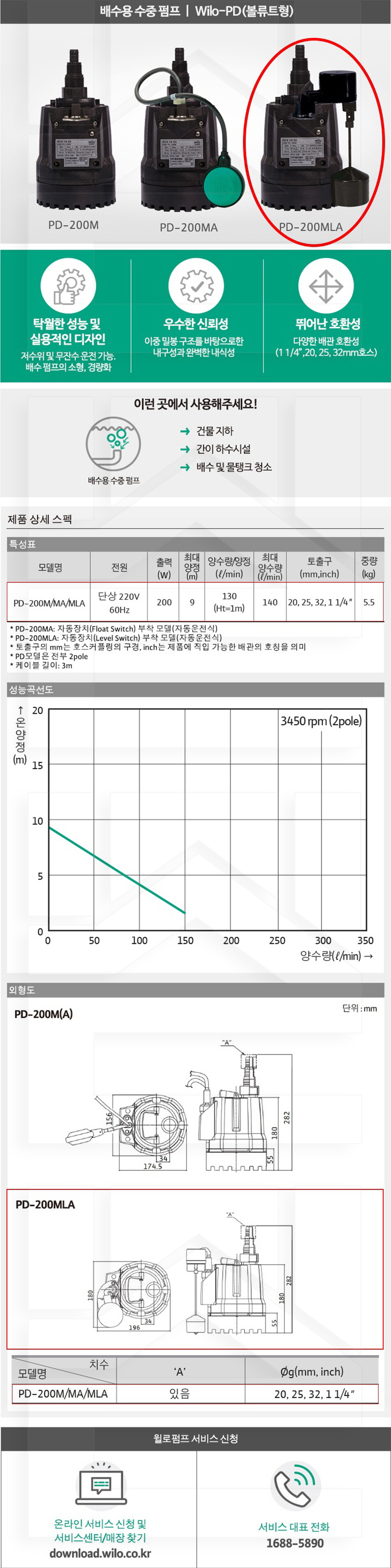 100-53-12-00000200 배수용수중자동레벨스위치형, 전수로용 PD-200MLA 판매가 215,000 ~ 원 배송방법 일반배송 브랜드 제조사 윌로펌프 주식회사 상품옵션 품명 옵션코드 규격 중량 판매단위 회원가 수량 PD-200MLA 100-53-12-00000200 25A호스타입 5.5kg (5,500g) 0 215,000원 - + PD-350MLA 100-53-12-00000350 32A 5.5kg (5,500g) 0 244,000원 - + PD-550MLA 100-53-12-00000550 50A 8.0kg (8,000g) 0 337,000원 - + PD-760MLA 100-53-12-00000760 50A 8.5kg (8,500g) 0 371,000원 - + 총 상품 금액(VAT포함) 원 회원 / 비회원 구매하기 상품담기 제품상세정보 상품문의 (0) 배송 안내 반품/교환 안내 배수용 수중 펌프 볼류트형 상품 문의하기 배송안내 배송 안내 일반제품 당일 1시 이전 주문시 재고 여부에 따라 당일발송 재고 부족시 2~3일 소요 파손위험제품 (화물택배/차량배송) 파손위험이 큰 제품은 빠렛트로 포장되어 차량으로 이동됩니다. 고객님이 지정한 장소와 가장 가까운 차량접근이 가능한 도로까지만 배송 주문물량 및 제품의 특성에 따라 화물, 화물택배. 합짐차량. 단독차량으로 고객님의 요청에 따라 운송 차량 지정 제품 하차시 파손이 있을 수 있으므로, 꼭 하차전 제품을 확인 고객센터 고객 센터 010-6539-7900 상담시간 오전 09시 ~ 오후 6시 점심 : 12:00 ~ 13:00 / 휴일 : 토, 일요일, 공휴일 반품/교환 안내 제품의 하자 및 오배송은 문의 주시면 즉시 처리해드리겠습니다. 반품/교환 판매자 지정택배사 : CJ대한통운 반품배송비(편도) : 3,000원 교환배송비(왕복) : 6,000원 보내실 곳 : 전라북도 전주시 완산구 콩쥐팥쥐로 1570 * 반품/교환 사유에 따른 요청 가능 기간 구매자 단순 변심 : 상품수령후 7일이내(구매자 반품 배송비 부담) 반품/교환 불가능 사유 교환/반품 요청 기간이 지난 경우 소비자의 책임 있는 사유로 상품 등이 분실/파손/훼손된 경우 소비자의 사용/소비에 의해 상품 등의 가치가 현저히 감소한 경우 제품을 설치 또는 장착하였을 경우 주문제작 상품중 상품제작에 들어간 경우 제품을 하차 또는 시공 후의 공정과정에서 일어난 파손의 경우 교환 반품시 고객 부담 배송비를 지불하지 아니한 경우 * 펌프제품은 미사용, 포장박스 미훼손 시에만 교환/반품이 가능합니다. 고객센터 고객 센터 010-6539-7900 상담시간 오전 09시 ~ 오후 6시 점심 : 12:00 ~ 13:00 / 휴일 : 토, 일요일, 공휴일