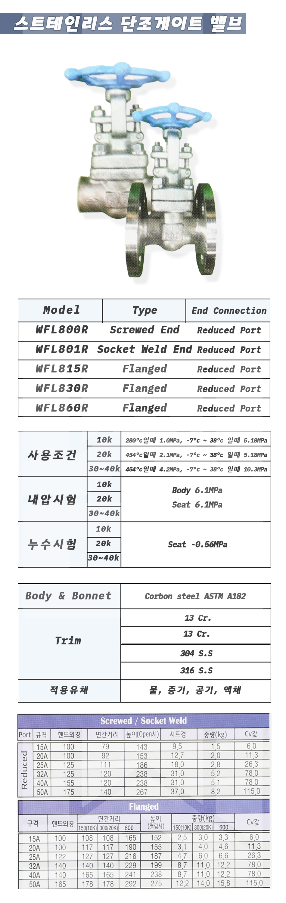 006-31-01-00000025 스텐 단조 게이트밸브 나사 판매가 151,000 ~ 원 배송방법 일반배송 브랜드 제조사 상품옵션 품명 옵션코드 규격 중량 판매단위 회원가 수량 스텐 단조 게이트밸브 나사 006-31-01-00000015 15A 1.5kg (1,500g) 0 93,000원 - + 스텐 단조 게이트밸브 나사 006-31-01-00000020 20A 2.0kg (2,000g) 0 97,000원 - + 스텐 단조 게이트밸브 나사 006-31-01-00000025 25A 2.8kg (2,800g) 0 151,000원 - + 스텐 단조 게이트밸브 나사 006-31-01-00000032 32A 5.2kg (5,200g) 0 233,700원 - + 스텐 단조 게이트밸브 나사 006-31-01-00000040 40A 5.1kg (5,100g) 0 286,000원 - + 스텐 단조 게이트밸브 나사 006-31-01-00000050 50A 8.2kg (8,200g) 0 410,000원 - + 총 상품 금액(VAT포함) 원 회원 / 비회원 구매하기 상품담기 제품상세정보 상품문의 (0) 배송 안내 반품/교환 안내 스텐 단조 게이트밸브 상품 문의하기 배송안내 배송 안내 일반제품 당일 1시 이전 주문시 재고 여부에 따라 당일발송 재고 부족시 2~3일 소요 파손위험제품 (화물택배/차량배송) 파손위험이 큰 제품은 빠렛트로 포장되어 차량으로 이동됩니다. 고객님이 지정한 장소와 가장 가까운 차량접근이 가능한 도로까지만 배송 주문물량 및 제품의 특성에 따라 화물, 화물택배. 합짐차량. 단독차량으로 고객님의 요청에 따라 운송 차량 지정 제품 하차시 파손이 있을 수 있으므로, 꼭 하차전 제품을 확인 고객센터 고객 센터 010-6539-7900 상담시간 오전 09시 ~ 오후 6시 점심 : 12:00 ~ 13:00 / 휴일 : 토, 일요일, 공휴일 반품/교환 안내 제품의 하자 및 오배송은 문의 주시면 즉시 처리해드리겠습니다. 반품/교환 판매자 지정택배사 : CJ대한통운 반품배송비(편도) : 3,000원 교환배송비(왕복) : 6,000원 보내실 곳 : 전라북도 전주시 완산구 콩쥐팥쥐로 1570 * 반품/교환 사유에 따른 요청 가능 기간 구매자 단순 변심 : 상품수령후 7일이내(구매자 반품 배송비 부담) 반품/교환 불가능 사유 교환/반품 요청 기간이 지난 경우 소비자의 책임 있는 사유로 상품 등이 분실/파손/훼손된 경우 소비자의 사용/소비에 의해 상품 등의 가치가 현저히 감소한 경우 제품을 설치 또는 장착하였을 경우 주문제작 상품중 상품제작에 들어간 경우 제품을 하차 또는 시공 후의 공정과정에서 일어난 파손의 경우 교환 반품시 고객 부담 배송비를 지불하지 아니한 경우 * 펌프제품은 미사용, 포장박스 미훼손 시에만 교환/반품이 가능합니다. 고객센터 고객 센터 010-6539-7900 상담시간 오전 09시 ~ 오후 6시 점심 : 12:00 ~ 13:00 / 휴일 : 토, 일요일, 공휴일