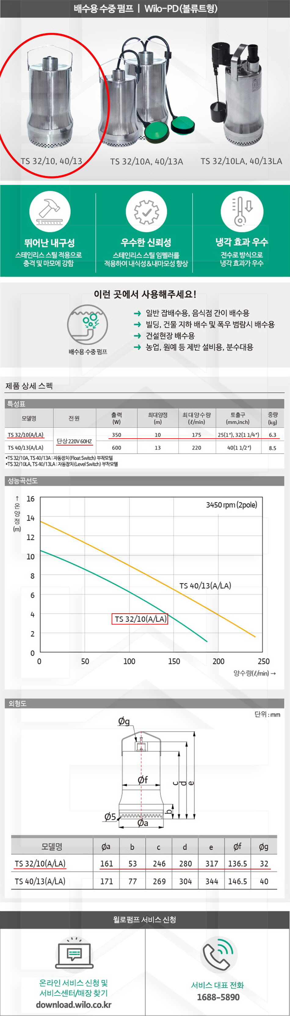 100-59-13-00003210 배수용수중비자동,올스텐 TS32/10 판매가 277,000 ~ 원 배송방법 일반배송 브랜드 제조사 윌로펌프 주식회사 상품옵션 품명 옵션코드 규격 중량 판매단위 회원가 수량 TS32/10 100-59-13-00003210 32/25A 6.3kg (6,300g) 0 277,000원 - + TS40/13 100-59-13-00004013 40A 8.5kg (8,500g) 0 368,000원 - + 총 상품 금액(VAT포함) 원 회원 / 비회원 구매하기 상품담기 제품상세정보 상품문의 (0) 배송 안내 반품/교환 안내 배수용 수중 펌프 볼류트형 상품 문의하기 배송안내 배송 안내 일반제품 당일 1시 이전 주문시 재고 여부에 따라 당일발송 재고 부족시 2~3일 소요 파손위험제품 (화물택배/차량배송) 파손위험이 큰 제품은 빠렛트로 포장되어 차량으로 이동됩니다. 고객님이 지정한 장소와 가장 가까운 차량접근이 가능한 도로까지만 배송 주문물량 및 제품의 특성에 따라 화물, 화물택배. 합짐차량. 단독차량으로 고객님의 요청에 따라 운송 차량 지정 제품 하차시 파손이 있을 수 있으므로, 꼭 하차전 제품을 확인 고객센터 고객 센터 010-6539-7900 상담시간 오전 09시 ~ 오후 6시 점심 : 12:00 ~ 13:00 / 휴일 : 토, 일요일, 공휴일 반품/교환 안내 제품의 하자 및 오배송은 문의 주시면 즉시 처리해드리겠습니다. 반품/교환 판매자 지정택배사 : CJ대한통운 반품배송비(편도) : 3,000원 교환배송비(왕복) : 6,000원 보내실 곳 : 전라북도 전주시 완산구 콩쥐팥쥐로 1570 * 반품/교환 사유에 따른 요청 가능 기간 구매자 단순 변심 : 상품수령후 7일이내(구매자 반품 배송비 부담) 반품/교환 불가능 사유 교환/반품 요청 기간이 지난 경우 소비자의 책임 있는 사유로 상품 등이 분실/파손/훼손된 경우 소비자의 사용/소비에 의해 상품 등의 가치가 현저히 감소한 경우 제품을 설치 또는 장착하였을 경우 주문제작 상품중 상품제작에 들어간 경우 제품을 하차 또는 시공 후의 공정과정에서 일어난 파손의 경우 교환 반품시 고객 부담 배송비를 지불하지 아니한 경우 * 펌프제품은 미사용, 포장박스 미훼손 시에만 교환/반품이 가능합니다. 고객센터 고객 센터 010-6539-7900 상담시간 오전 09시 ~ 오후 6시 점심 : 12:00 ~ 13:00 / 휴일 : 토, 일요일, 공휴일