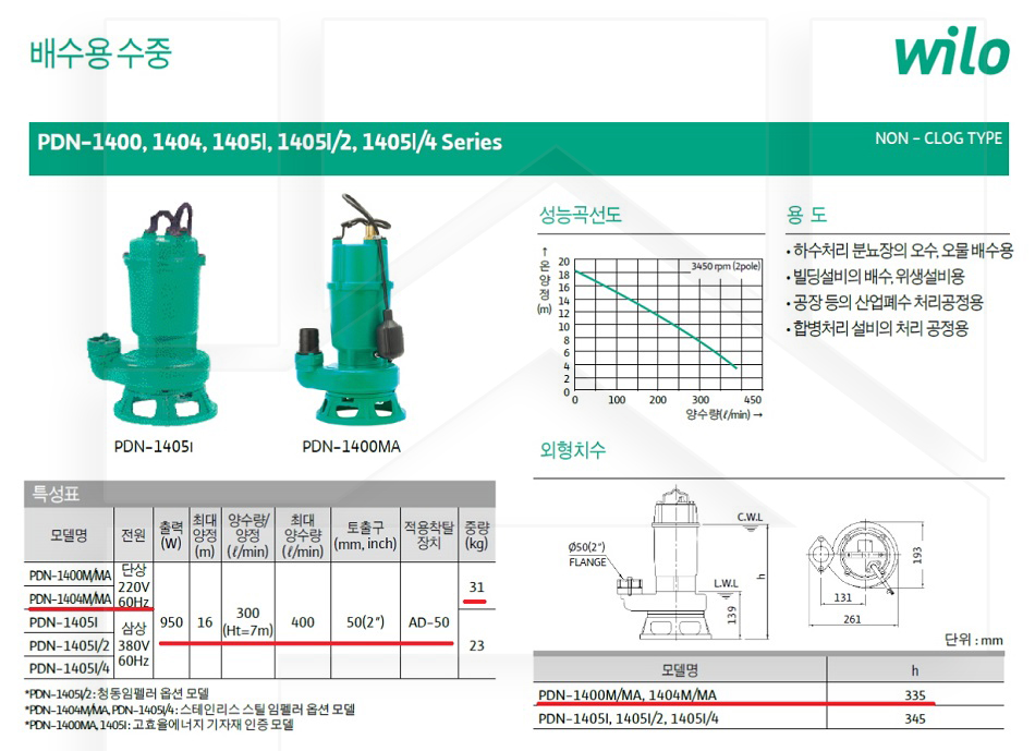 100-65-11-00001404 오수자동 PDN-1404MA 판매가 558,000 ~ 원 배송방법 일반배송 브랜드 제조사 윌로펌프 주식회사 상품옵션 품명 옵션코드 규격 중량 판매단위 회원가 수량 PDN-1400MA, PDN-1405MA 100-65-11-00001400 50A 31.0kg (31,000g) 0 477,000원 - + PDN-1404MA 100-65-11-00001404 50A 31.0kg (31,000g) 0 558,000원 - + 총 상품 금액(VAT포함) 원 회원 / 비회원 구매하기 상품담기 제품상세정보 상품문의 (0) 배송 안내 반품/교환 안내 배수용 수중 펌프 논클로그형 상품 문의하기 배송안내 배송 안내 일반제품 당일 1시 이전 주문시 재고 여부에 따라 당일발송 재고 부족시 2~3일 소요 파손위험제품 (화물택배/차량배송) 파손위험이 큰 제품은 빠렛트로 포장되어 차량으로 이동됩니다. 고객님이 지정한 장소와 가장 가까운 차량접근이 가능한 도로까지만 배송 주문물량 및 제품의 특성에 따라 화물, 화물택배. 합짐차량. 단독차량으로 고객님의 요청에 따라 운송 차량 지정 제품 하차시 파손이 있을 수 있으므로, 꼭 하차전 제품을 확인 고객센터 고객 센터 010-6539-7900 상담시간 오전 09시 ~ 오후 6시 점심 : 12:00 ~ 13:00 / 휴일 : 토, 일요일, 공휴일 반품/교환 안내 제품의 하자 및 오배송은 문의 주시면 즉시 처리해드리겠습니다. 반품/교환 판매자 지정택배사 : CJ대한통운 반품배송비(편도) : 3,000원 교환배송비(왕복) : 6,000원 보내실 곳 : 전라북도 전주시 완산구 콩쥐팥쥐로 1570 * 반품/교환 사유에 따른 요청 가능 기간 구매자 단순 변심 : 상품수령후 7일이내(구매자 반품 배송비 부담) 반품/교환 불가능 사유 교환/반품 요청 기간이 지난 경우 소비자의 책임 있는 사유로 상품 등이 분실/파손/훼손된 경우 소비자의 사용/소비에 의해 상품 등의 가치가 현저히 감소한 경우 제품을 설치 또는 장착하였을 경우 주문제작 상품중 상품제작에 들어간 경우 제품을 하차 또는 시공 후의 공정과정에서 일어난 파손의 경우 교환 반품시 고객 부담 배송비를 지불하지 아니한 경우 * 펌프제품은 미사용, 포장박스 미훼손 시에만 교환/반품이 가능합니다. 고객센터 고객 센터 010-6539-7900 상담시간 오전 09시 ~ 오후 6시 점심 : 12:00 ~ 13:00 / 휴일 : 토, 일요일, 공휴일