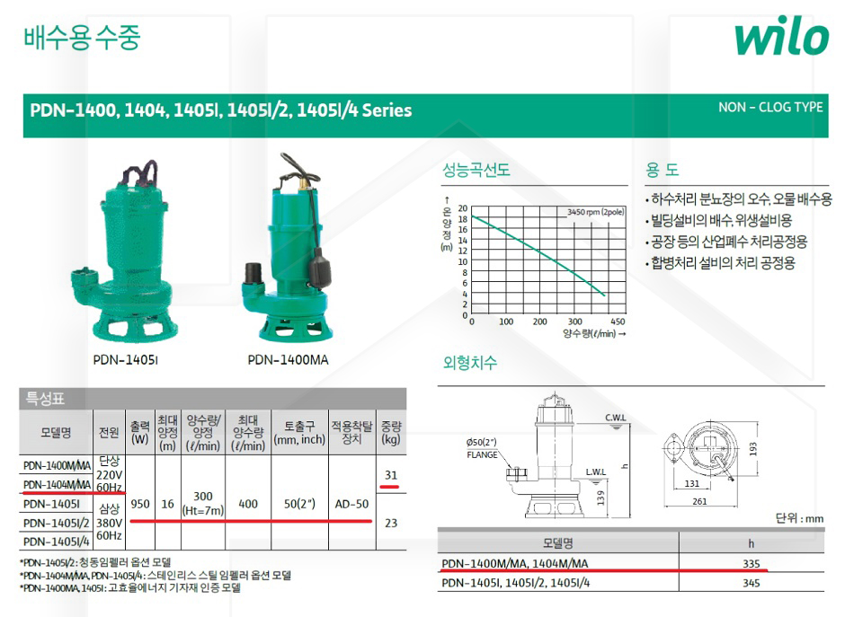 100-65-12-00001404 오수비자동 PDN-1404M 판매가 538,000 ~ 원 배송방법 일반배송 브랜드 제조사 윌로펌프 주식회사 상품옵션 품명 옵션코드 규격 중량 판매단위 회원가 수량 PDN-1400M, PDN-1400M 100-65-12-00001400 50A 31.0kg (31,000g) 0 460,000원 - + PDN-1404M 100-65-12-00001404 50A 31.0kg (31,000g) 0 538,000원 - + 총 상품 금액(VAT포함) 원 회원 / 비회원 구매하기 상품담기 제품상세정보 상품문의 (0) 배송 안내 반품/교환 안내 배수용 수중 펌프 논클로그형 상품 문의하기 배송안내 배송 안내 일반제품 당일 1시 이전 주문시 재고 여부에 따라 당일발송 재고 부족시 2~3일 소요 파손위험제품 (화물택배/차량배송) 파손위험이 큰 제품은 빠렛트로 포장되어 차량으로 이동됩니다. 고객님이 지정한 장소와 가장 가까운 차량접근이 가능한 도로까지만 배송 주문물량 및 제품의 특성에 따라 화물, 화물택배. 합짐차량. 단독차량으로 고객님의 요청에 따라 운송 차량 지정 제품 하차시 파손이 있을 수 있으므로, 꼭 하차전 제품을 확인 고객센터 고객 센터 010-6539-7900 상담시간 오전 09시 ~ 오후 6시 점심 : 12:00 ~ 13:00 / 휴일 : 토, 일요일, 공휴일 반품/교환 안내 제품의 하자 및 오배송은 문의 주시면 즉시 처리해드리겠습니다. 반품/교환 판매자 지정택배사 : CJ대한통운 반품배송비(편도) : 3,000원 교환배송비(왕복) : 6,000원 보내실 곳 : 전라북도 전주시 완산구 콩쥐팥쥐로 1570 * 반품/교환 사유에 따른 요청 가능 기간 구매자 단순 변심 : 상품수령후 7일이내(구매자 반품 배송비 부담) 반품/교환 불가능 사유 교환/반품 요청 기간이 지난 경우 소비자의 책임 있는 사유로 상품 등이 분실/파손/훼손된 경우 소비자의 사용/소비에 의해 상품 등의 가치가 현저히 감소한 경우 제품을 설치 또는 장착하였을 경우 주문제작 상품중 상품제작에 들어간 경우 제품을 하차 또는 시공 후의 공정과정에서 일어난 파손의 경우 교환 반품시 고객 부담 배송비를 지불하지 아니한 경우 * 펌프제품은 미사용, 포장박스 미훼손 시에만 교환/반품이 가능합니다. 고객센터 고객 센터 010-6539-7900 상담시간 오전 09시 ~ 오후 6시 점심 : 12:00 ~ 13:00 / 휴일 : 토, 일요일, 공휴일