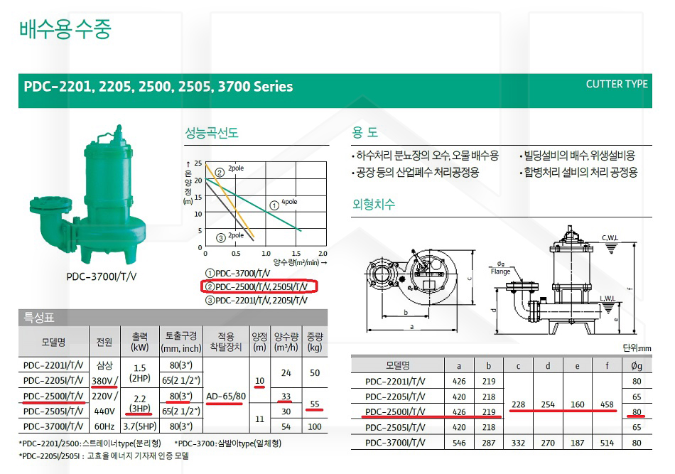 100-66-12-00002500 오수펌프커터 삼상330 PDC-2500I 판매가 864,000 ~ 원 배송방법 일반배송 브랜드 제조사 윌로펌프 주식회사 상품옵션 품명 옵션코드 규격 중량 판매단위 회원가 수량 PDC-2201I 100-66-12-00002201 80A 50.0kg (50,000g) 0 783,000원 - + PDC-2500I 100-66-12-00002500 80A 55.0kg (55,000g) 0 864,000원 - + PDC-3700I 100-66-12-00003700 80A 100.0kg (100,000g) 0 1,349,000원 - + 총 상품 금액(VAT포함) 원 회원 / 비회원 구매하기 상품담기 제품상세정보 상품문의 (0) 배송 안내 반품/교환 안내 배수용 수중 펌프 컷터형 상품 문의하기 배송안내 배송 안내 일반제품 당일 1시 이전 주문시 재고 여부에 따라 당일발송 재고 부족시 2~3일 소요 파손위험제품 (화물택배/차량배송) 파손위험이 큰 제품은 빠렛트로 포장되어 차량으로 이동됩니다. 고객님이 지정한 장소와 가장 가까운 차량접근이 가능한 도로까지만 배송 주문물량 및 제품의 특성에 따라 화물, 화물택배. 합짐차량. 단독차량으로 고객님의 요청에 따라 운송 차량 지정 제품 하차시 파손이 있을 수 있으므로, 꼭 하차전 제품을 확인 고객센터 고객 센터 010-6539-7900 상담시간 오전 09시 ~ 오후 6시 점심 : 12:00 ~ 13:00 / 휴일 : 토, 일요일, 공휴일 반품/교환 안내 제품의 하자 및 오배송은 문의 주시면 즉시 처리해드리겠습니다. 반품/교환 판매자 지정택배사 : CJ대한통운 반품배송비(편도) : 3,000원 교환배송비(왕복) : 6,000원 보내실 곳 : 전라북도 전주시 완산구 콩쥐팥쥐로 1570 * 반품/교환 사유에 따른 요청 가능 기간 구매자 단순 변심 : 상품수령후 7일이내(구매자 반품 배송비 부담) 반품/교환 불가능 사유 교환/반품 요청 기간이 지난 경우 소비자의 책임 있는 사유로 상품 등이 분실/파손/훼손된 경우 소비자의 사용/소비에 의해 상품 등의 가치가 현저히 감소한 경우 제품을 설치 또는 장착하였을 경우 주문제작 상품중 상품제작에 들어간 경우 제품을 하차 또는 시공 후의 공정과정에서 일어난 파손의 경우 교환 반품시 고객 부담 배송비를 지불하지 아니한 경우 * 펌프제품은 미사용, 포장박스 미훼손 시에만 교환/반품이 가능합니다. 고객센터 고객 센터 010-6539-7900 상담시간 오전 09시 ~ 오후 6시 점심 : 12:00 ~ 13:00 / 휴일 : 토, 일요일, 공휴일