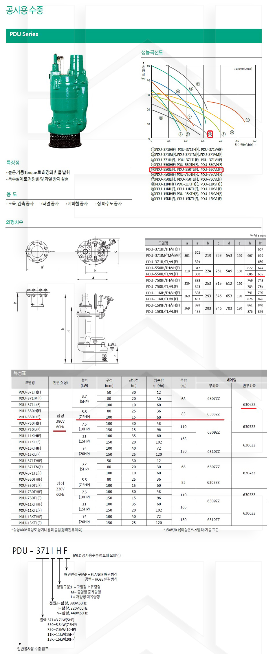 100-73-11-00000550 공사용수중 삼상380 저양정대유량 PDU-550IL 판매가 1,504,000 ~ 원 배송방법 일반배송 브랜드 제조사 윌로펌프 주식회사 상품옵션 품명 옵션코드 규격 중량 판매단위 회원가 수량 PDU-371IL 100-73-11-00000371 100A 68.0kg (68,000g) 0 1,137,000원 - + PDU-550IL 100-73-11-00000550 100A 85.0kg (85,000g) 0 1,504,000원 - + PDU-750IL 100-73-11-00000750 100A 110.0kg (110,000g) 0 1,922,000원 - + PDU-11KIL 100-73-11-00110000 100A 165.0kg (165,000g) 0 2,552,000원 - + PDU-15KIL 100-73-11-00150000 150A 180.0kg (180,000g) 0 3,062,000원 - + 총 상품 금액(VAT포함) 원 회원 / 비회원 구매하기 상품담기 제품상세정보 상품문의 (0) 배송 안내 반품/교환 안내 공사용 수중 펌프 상품 문의하기 배송안내 배송 안내 일반제품 당일 1시 이전 주문시 재고 여부에 따라 당일발송 재고 부족시 2~3일 소요 파손위험제품 (화물택배/차량배송) 파손위험이 큰 제품은 빠렛트로 포장되어 차량으로 이동됩니다. 고객님이 지정한 장소와 가장 가까운 차량접근이 가능한 도로까지만 배송 주문물량 및 제품의 특성에 따라 화물, 화물택배. 합짐차량. 단독차량으로 고객님의 요청에 따라 운송 차량 지정 제품 하차시 파손이 있을 수 있으므로, 꼭 하차전 제품을 확인 고객센터 고객 센터 010-6539-7900 상담시간 오전 09시 ~ 오후 6시 점심 : 12:00 ~ 13:00 / 휴일 : 토, 일요일, 공휴일 반품/교환 안내 제품의 하자 및 오배송은 문의 주시면 즉시 처리해드리겠습니다. 반품/교환 판매자 지정택배사 : CJ대한통운 반품배송비(편도) : 3,000원 교환배송비(왕복) : 6,000원 보내실 곳 : 전라북도 전주시 완산구 콩쥐팥쥐로 1570 * 반품/교환 사유에 따른 요청 가능 기간 구매자 단순 변심 : 상품수령후 7일이내(구매자 반품 배송비 부담) 반품/교환 불가능 사유 교환/반품 요청 기간이 지난 경우 소비자의 책임 있는 사유로 상품 등이 분실/파손/훼손된 경우 소비자의 사용/소비에 의해 상품 등의 가치가 현저히 감소한 경우 제품을 설치 또는 장착하였을 경우 주문제작 상품중 상품제작에 들어간 경우 제품을 하차 또는 시공 후의 공정과정에서 일어난 파손의 경우 교환 반품시 고객 부담 배송비를 지불하지 아니한 경우 * 펌프제품은 미사용, 포장박스 미훼손 시에만 교환/반품이 가능합니다. 고객센터 고객 센터 010-6539-7900 상담시간 오전 09시 ~ 오후 6시 점심 : 12:00 ~ 13:00 / 휴일 : 토, 일요일, 공휴일