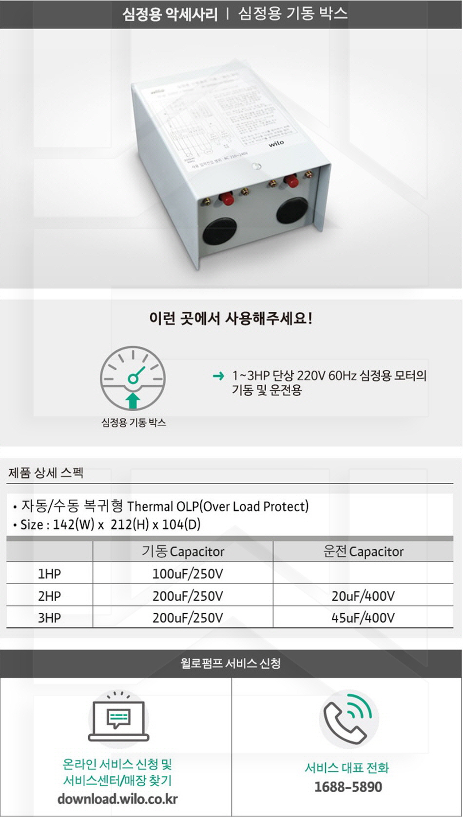 101-14-11-00003012 심정용기동박스 CB-3012S 판매가 143,000 ~ 원 배송방법 일반배송 브랜드 제조사 윌로펌프 주식회사 상품옵션 품명 옵션코드 규격 중량 판매단위 회원가 수량 CB-1012S 101-14-11-00001012 0.0kg (0g) 0 84,000원 - + CB-2012S 101-14-11-00002012 0.0kg (0g) 0 126,000원 - + CB-3012S 101-14-11-00003012 0.0kg (0g) 0 143,000원 - + 총 상품 금액(VAT포함) 원 회원 / 비회원 구매하기 상품담기 제품상세정보 상품문의 (0) 배송 안내 반품/교환 안내 심정용 펌프 기동 박스 액세서리 상품 문의하기 배송안내 배송 안내 일반제품 당일 1시 이전 주문시 재고 여부에 따라 당일발송 재고 부족시 2~3일 소요 파손위험제품 (화물택배/차량배송) 파손위험이 큰 제품은 빠렛트로 포장되어 차량으로 이동됩니다. 고객님이 지정한 장소와 가장 가까운 차량접근이 가능한 도로까지만 배송 주문물량 및 제품의 특성에 따라 화물, 화물택배. 합짐차량. 단독차량으로 고객님의 요청에 따라 운송 차량 지정 제품 하차시 파손이 있을 수 있으므로, 꼭 하차전 제품을 확인 고객센터 고객 센터 010-6539-7900 상담시간 오전 09시 ~ 오후 6시 점심 : 12:00 ~ 13:00 / 휴일 : 토, 일요일, 공휴일 반품/교환 안내 제품의 하자 및 오배송은 문의 주시면 즉시 처리해드리겠습니다. 반품/교환 판매자 지정택배사 : CJ대한통운 반품배송비(편도) : 3,000원 교환배송비(왕복) : 6,000원 보내실 곳 : 전라북도 전주시 완산구 콩쥐팥쥐로 1570 * 반품/교환 사유에 따른 요청 가능 기간 구매자 단순 변심 : 상품수령후 7일이내(구매자 반품 배송비 부담) 반품/교환 불가능 사유 교환/반품 요청 기간이 지난 경우 소비자의 책임 있는 사유로 상품 등이 분실/파손/훼손된 경우 소비자의 사용/소비에 의해 상품 등의 가치가 현저히 감소한 경우 제품을 설치 또는 장착하였을 경우 주문제작 상품중 상품제작에 들어간 경우 제품을 하차 또는 시공 후의 공정과정에서 일어난 파손의 경우 교환 반품시 고객 부담 배송비를 지불하지 아니한 경우 * 펌프제품은 미사용, 포장박스 미훼손 시에만 교환/반품이 가능합니다. 고객센터 고객 센터 010-6539-7900 상담시간 오전 09시 ~ 오후 6시 점심 : 12:00 ~ 13:00 / 휴일 : 토, 일요일, 공휴일