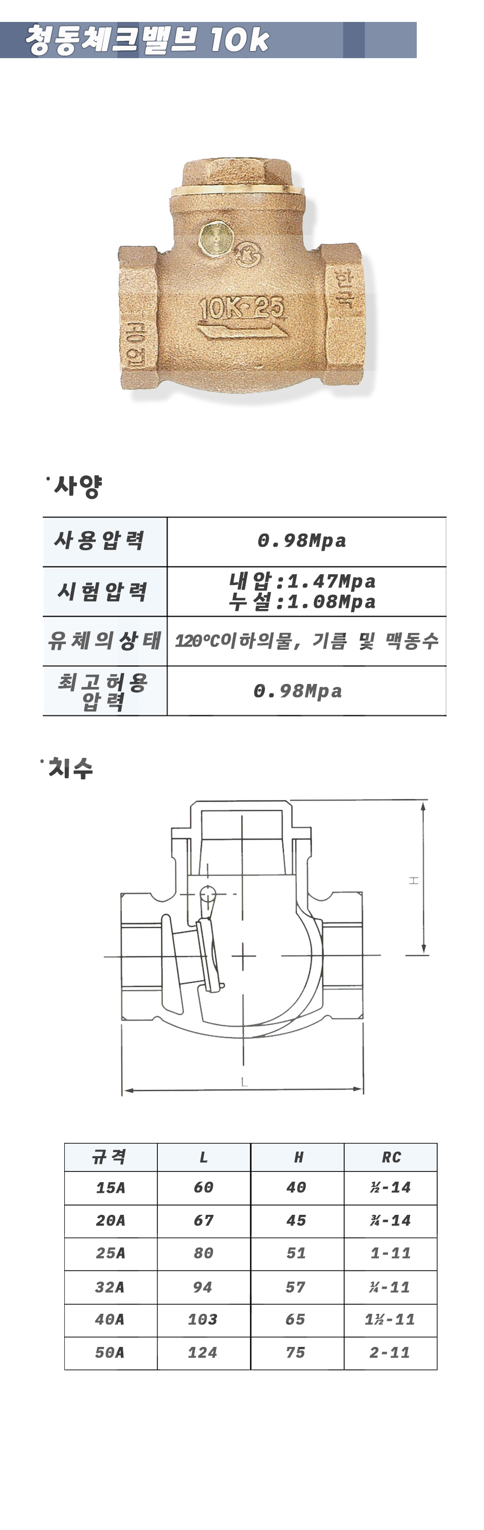 001-32-02-00000065 청동 체크밸브 10K 판매가 120,700 ~ 원 배송방법 일반배송 브랜드 제조사 상품옵션 품명 옵션코드 규격 중량 판매단위 회원가 수량 청동 체크밸브 10K 001-32-02-00000015 15A 0.4kg (360g) 0 16,700원 - + 청동 체크밸브 10K 001-32-02-00000020 20A 0.5kg (510g) 0 22,600원 - + 청동 체크밸브 10K 001-32-02-00000025 25A 0.6kg (636g) 0 31,400원 - + 청동 체크밸브 10K 001-32-02-00000032 32A 1.0kg (970g) 0 45,700원 - + 청동 체크밸브 10K 001-32-02-00000040 40A 1.4kg (1,370g) 0 58,500원 - + 청동 체크밸브 10K 001-32-02-00000050 50A 2.1kg (2,110g) 0 90,300원 - + 청동 체크밸브 10K 001-32-02-00000065 65A 2.5kg (2,450g) 0 120,700원 - + 청동 체크밸브 10K 001-32-02-00000080 80A 3.0kg (3,030g) 0 165,600원 - + 총 상품 금액(VAT포함) 원 회원 / 비회원 구매하기 상품담기 제품상세정보 상품문의 (0) 배송 안내 반품/교환 안내 청동 체크밸브 10K 상품 문의하기 배송안내 배송 안내 일반제품 당일 1시 이전 주문시 재고 여부에 따라 당일발송 재고 부족시 2~3일 소요 파손위험제품 (화물택배/차량배송) 파손위험이 큰 제품은 빠렛트로 포장되어 차량으로 이동됩니다. 고객님이 지정한 장소와 가장 가까운 차량접근이 가능한 도로까지만 배송 주문물량 및 제품의 특성에 따라 화물, 화물택배. 합짐차량. 단독차량으로 고객님의 요청에 따라 운송 차량 지정 제품 하차시 파손이 있을 수 있으므로, 꼭 하차전 제품을 확인 고객센터 고객 센터 010-6539-7900 상담시간 오전 09시 ~ 오후 6시 점심 : 12:00 ~ 13:00 / 휴일 : 토, 일요일, 공휴일 반품/교환 안내 제품의 하자 및 오배송은 문의 주시면 즉시 처리해드리겠습니다. 반품/교환 판매자 지정택배사 : CJ대한통운 반품배송비(편도) : 3,000원 교환배송비(왕복) : 6,000원 보내실 곳 : 전라북도 전주시 완산구 콩쥐팥쥐로 1570 * 반품/교환 사유에 따른 요청 가능 기간 구매자 단순 변심 : 상품수령후 7일이내(구매자 반품 배송비 부담) 반품/교환 불가능 사유 교환/반품 요청 기간이 지난 경우 소비자의 책임 있는 사유로 상품 등이 분실/파손/훼손된 경우 소비자의 사용/소비에 의해 상품 등의 가치가 현저히 감소한 경우 제품을 설치 또는 장착하였을 경우 주문제작 상품중 상품제작에 들어간 경우 제품을 하차 또는 시공 후의 공정과정에서 일어난 파손의 경우 교환 반품시 고객 부담 배송비를 지불하지 아니한 경우 * 펌프제품은 미사용, 포장박스 미훼손 시에만 교환/반품이 가능합니다. 고객센터 고객 센터 010-6539-7900 상담시간 오전 09시 ~ 오후 6시 점심 : 12:00 ~ 13:00 / 휴일 : 토, 일요일, 공휴일