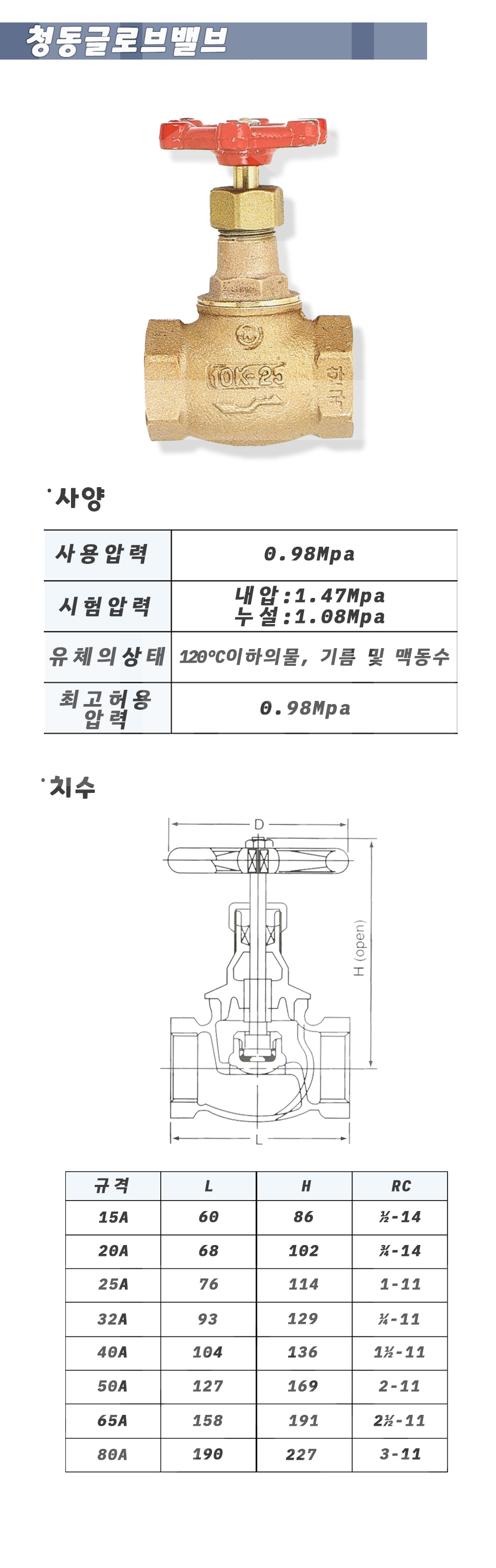 001-33-01-00000050 청동 글로브밸브 10K 판매가 107,500 ~ 원 배송방법 일반배송 브랜드 제조사 상품옵션 품명 옵션코드 규격 중량 판매단위 회원가 수량 청동 글로브밸브 10K 001-33-01-00000015 15A 0.4kg (370g) 0 17,400원 - + 청동 글로브밸브 10K 001-33-01-00000020 20A 0.8kg (820g) 0 26,900원 - + 청동 글로브밸브 10K 001-33-01-00000025 25A 0.8kg (820g) 0 36,700원 - + 청동 글로브밸브 10K 001-33-01-00000032 32A 1.6kg (1,590g) 0 55,500원 - + 청동 글로브밸브 10K 001-33-01-00000040 40A 2.0kg (2,020g) 0 71,300원 - + 청동 글로브밸브 10K 001-33-01-00000050 50A 3.2kg (3,210g) 0 107,500원 - + 청동 글로브밸브 10K 001-33-01-00000065 65A 4.3kg (4,260g) 0 190,500원 - + 청동 글로브밸브 10K 001-33-01-00000080 80A 7.8kg (7,750g) 0 337,000원 - + 총 상품 금액(VAT포함) 원 회원 / 비회원 구매하기 상품담기 제품상세정보 상품문의 (0) 배송 안내 반품/교환 안내 청동 글로브 밸브 상품 문의하기 배송안내 배송 안내 일반제품 당일 1시 이전 주문시 재고 여부에 따라 당일발송 재고 부족시 2~3일 소요 파손위험제품 (화물택배/차량배송) 파손위험이 큰 제품은 빠렛트로 포장되어 차량으로 이동됩니다. 고객님이 지정한 장소와 가장 가까운 차량접근이 가능한 도로까지만 배송 주문물량 및 제품의 특성에 따라 화물, 화물택배. 합짐차량. 단독차량으로 고객님의 요청에 따라 운송 차량 지정 제품 하차시 파손이 있을 수 있으므로, 꼭 하차전 제품을 확인 고객센터 고객 센터 010-6539-7900 상담시간 오전 09시 ~ 오후 6시 점심 : 12:00 ~ 13:00 / 휴일 : 토, 일요일, 공휴일 반품/교환 안내 제품의 하자 및 오배송은 문의 주시면 즉시 처리해드리겠습니다. 반품/교환 판매자 지정택배사 : CJ대한통운 반품배송비(편도) : 3,000원 교환배송비(왕복) : 6,000원 보내실 곳 : 전라북도 전주시 완산구 콩쥐팥쥐로 1570 * 반품/교환 사유에 따른 요청 가능 기간 구매자 단순 변심 : 상품수령후 7일이내(구매자 반품 배송비 부담) 반품/교환 불가능 사유 교환/반품 요청 기간이 지난 경우 소비자의 책임 있는 사유로 상품 등이 분실/파손/훼손된 경우 소비자의 사용/소비에 의해 상품 등의 가치가 현저히 감소한 경우 제품을 설치 또는 장착하였을 경우 주문제작 상품중 상품제작에 들어간 경우 제품을 하차 또는 시공 후의 공정과정에서 일어난 파손의 경우 교환 반품시 고객 부담 배송비를 지불하지 아니한 경우 * 펌프제품은 미사용, 포장박스 미훼손 시에만 교환/반품이 가능합니다. 고객센터 고객 센터 010-6539-7900 상담시간 오전 09시 ~ 오후 6시 점심 : 12:00 ~ 13:00 / 휴일 : 토, 일요일, 공휴일